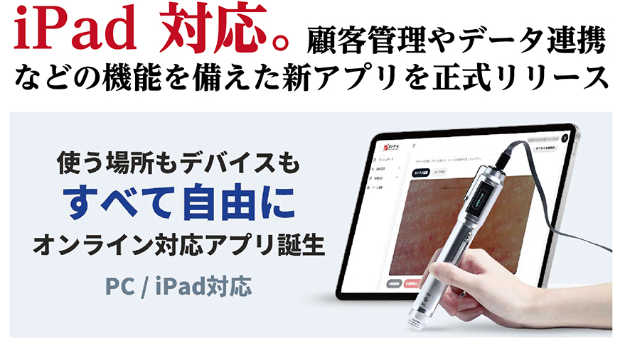 Type-C 対応の iPad でスコープを直接操作でき、ケーブル接続だけで撮影・確認・保存まで完結します。